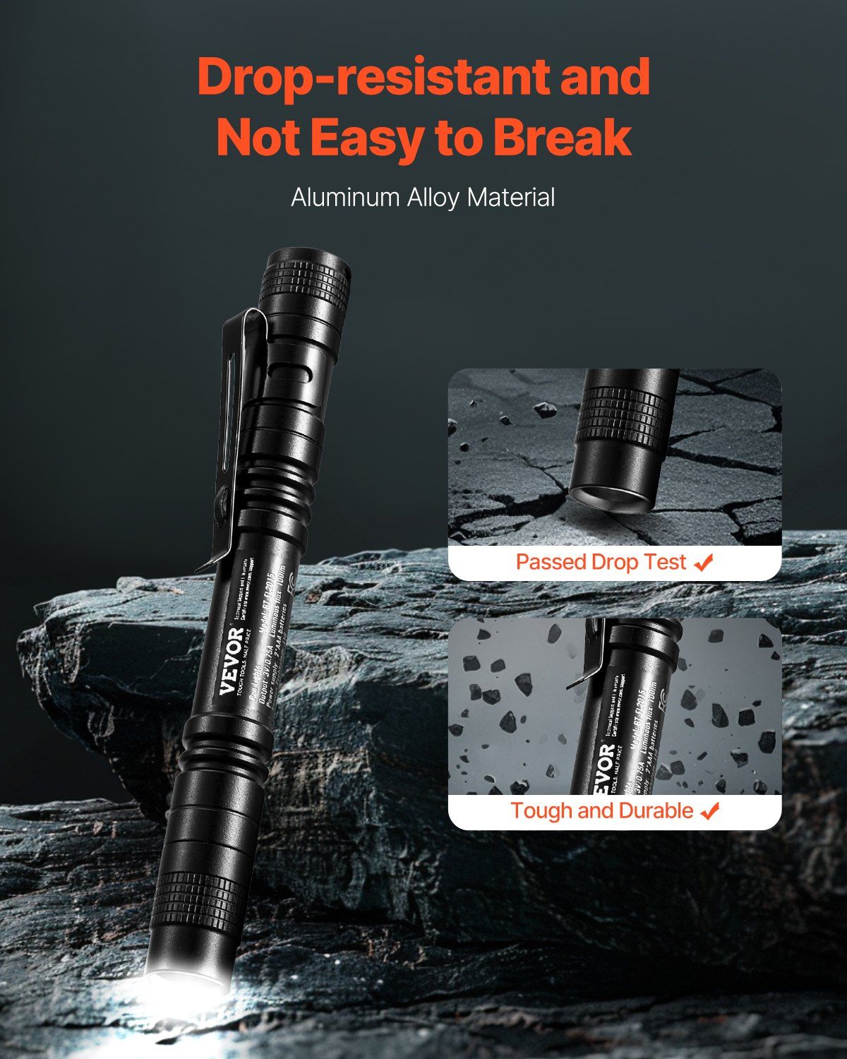 Constructed from tough aluminum alloy, the body of the pocket pen light is IPX4 waterproof, making it suitable for use in harsh environments and withstands drops and impacts.