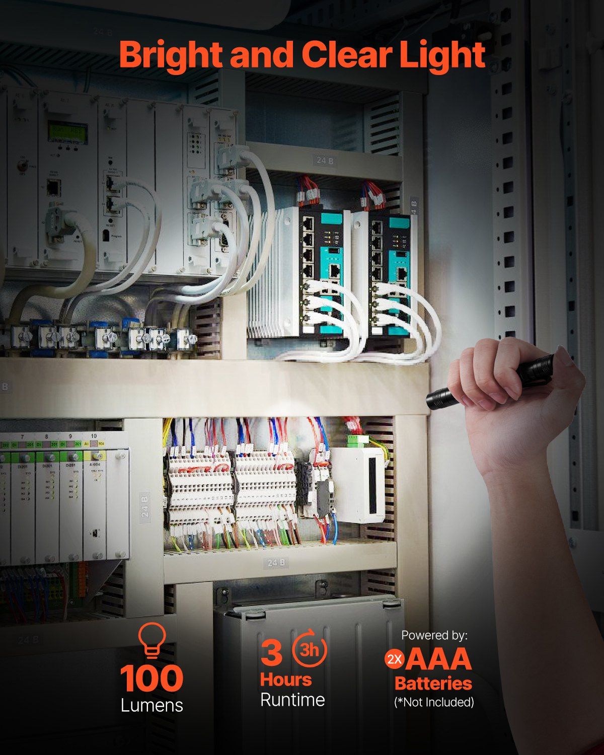 1.Bright and Clear Illumination: With 100 lumens of light output, this pen light provides clear and bright illumination, ideal for focused lighting in close-up work areas. Powered by 2 standard AAA batteries (batteries not included), it provides several hours of reliable use