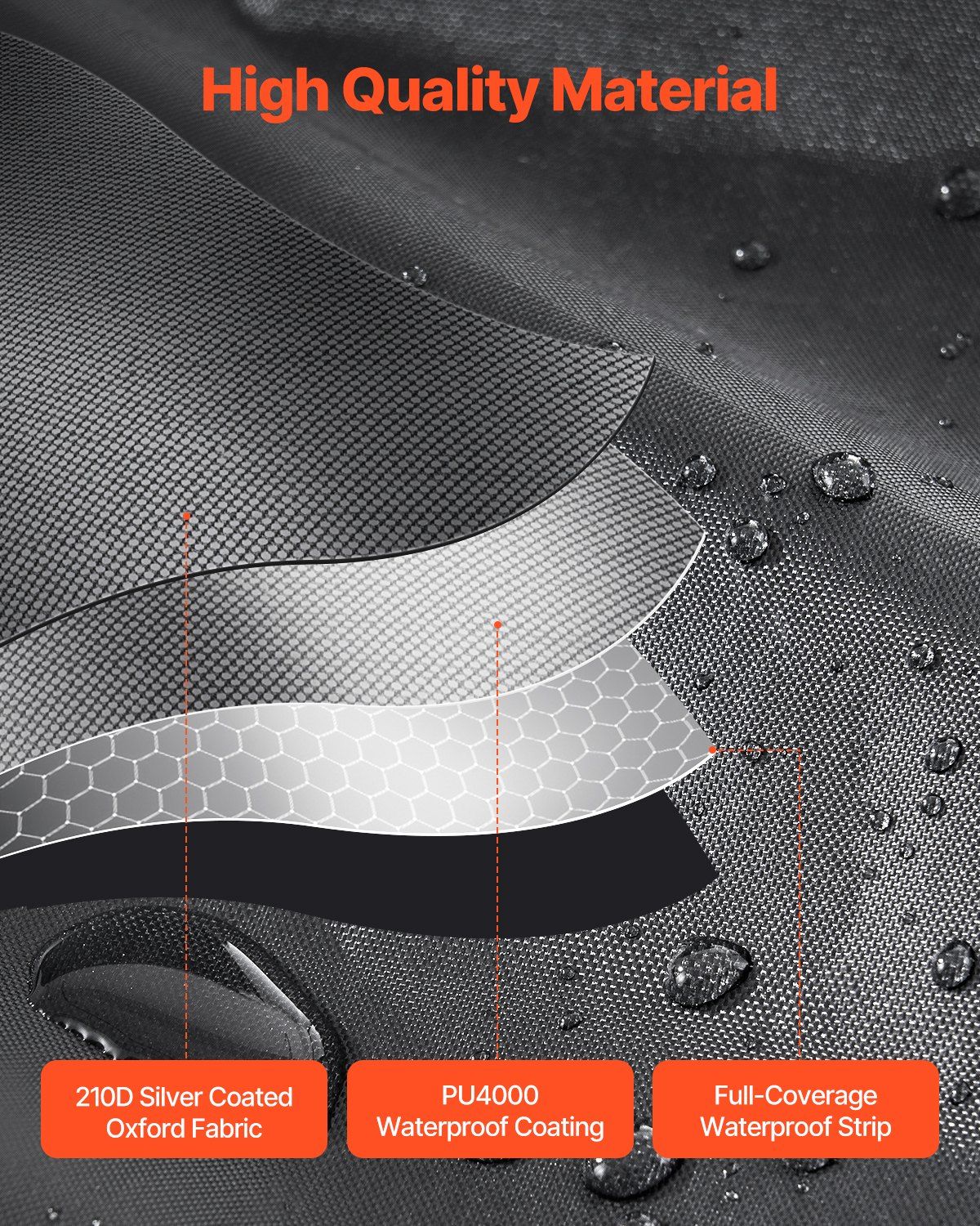 1.Comprehensive Coverage: Our bike shed features a professional-grade dual waterproof coating and silver-coated 210D Oxford fabric. The outer layer of 210D silver-coated Oxford fabric combined with a PU4000 waterproof coating, full-coverage waterproof tape, and arched-top design avoid water pooling, keeping the interior dry. Sunshade material further extends its lifespan.
