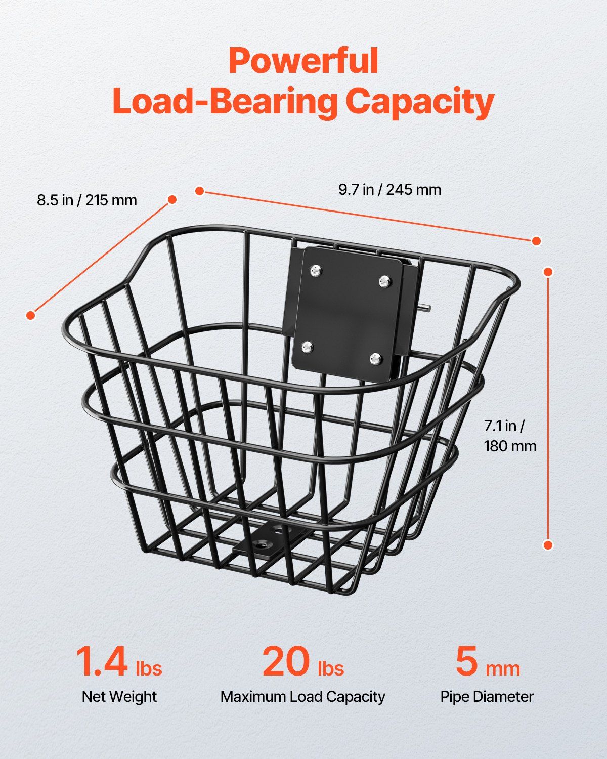 This bicycle front basket storage easily supports up to 20 lbs (9 kg), greatly increasing your storage capacity while cycling or shopping.