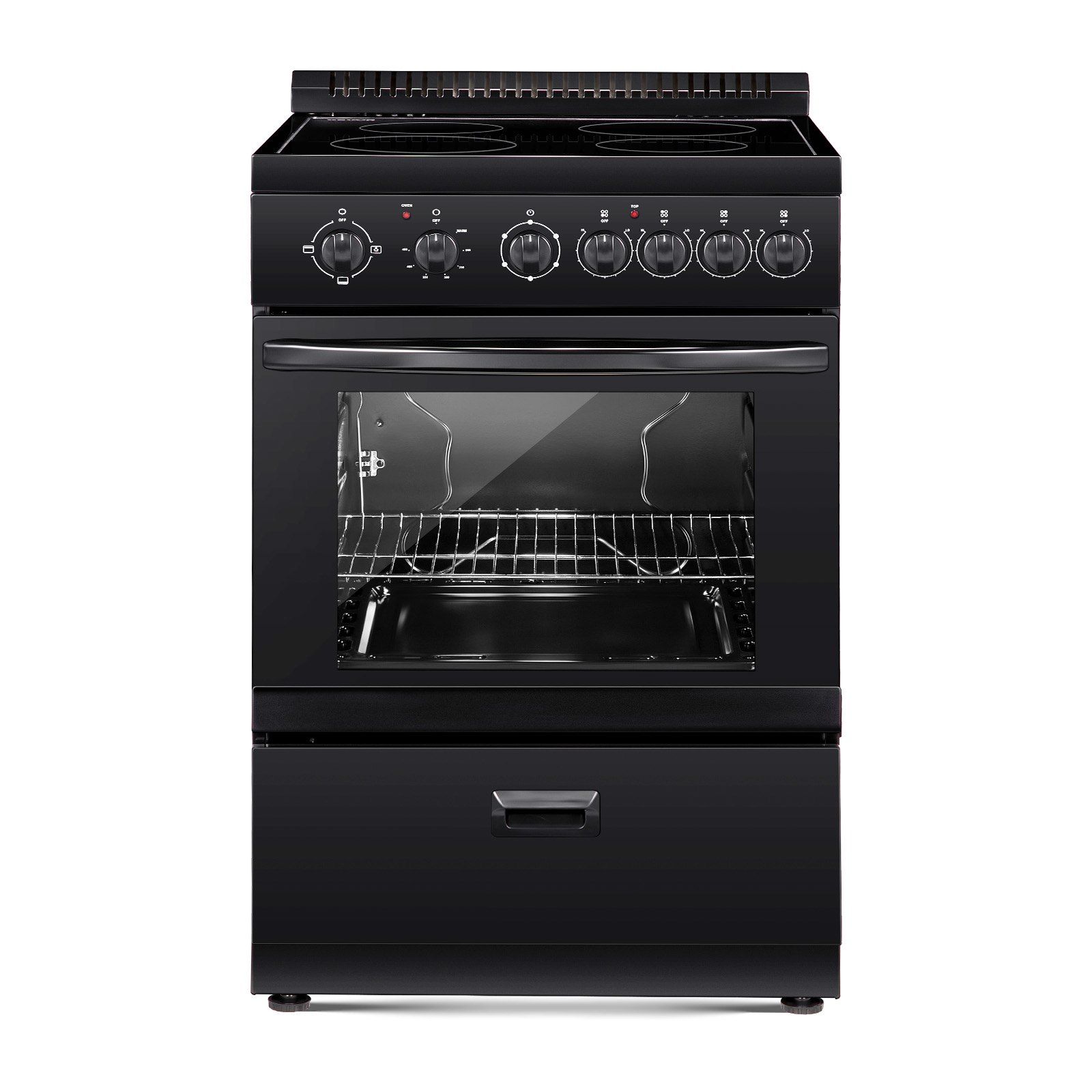 1.Spacious & Versatile Design: This electric oven, with a standard size of 24 in and 4 burners, lets you sauté, simmer, and boil at one time. A 2.7 cu. ft. oven fits a whole turkey and features 3 adjustable racks, great for efficient family cooking