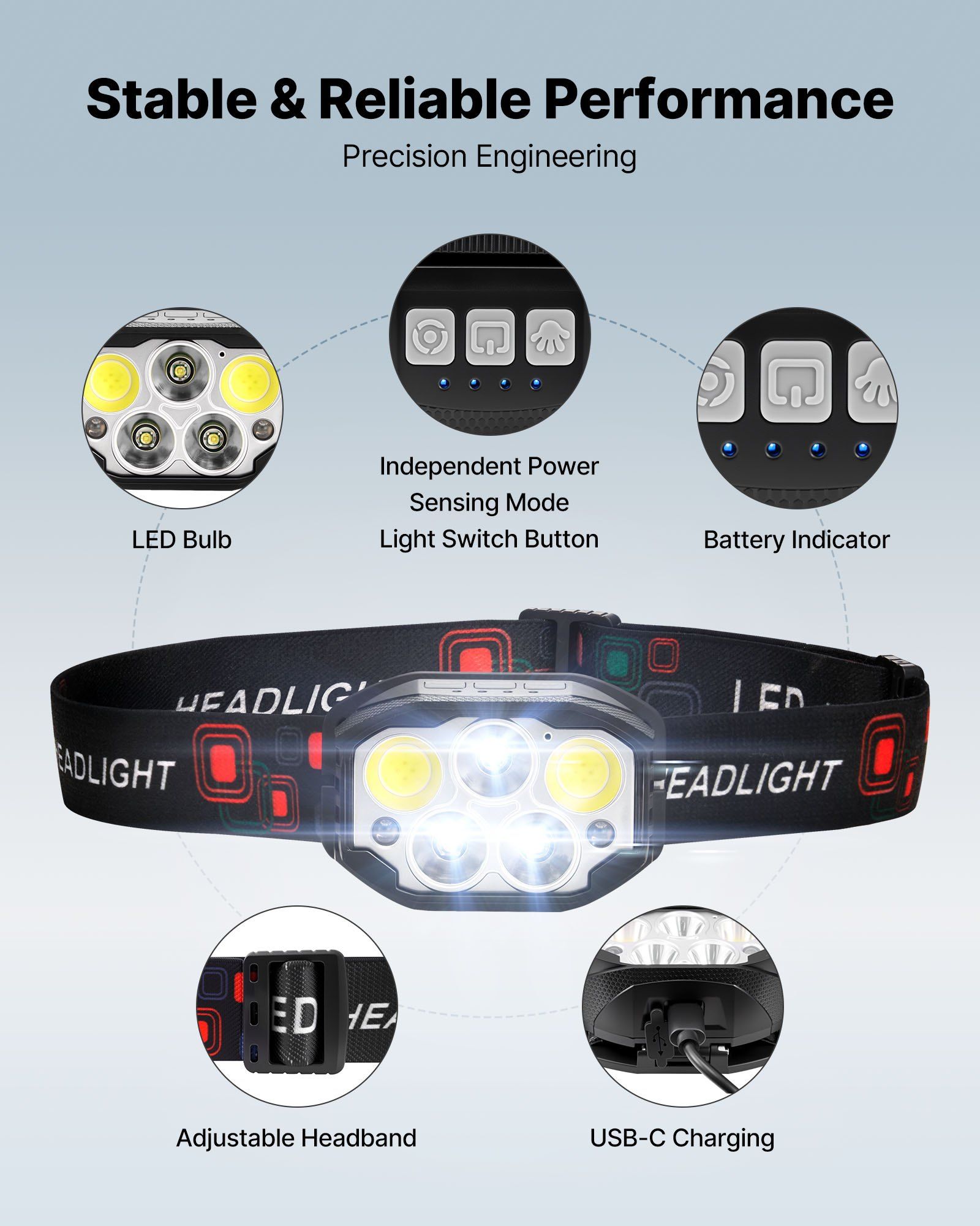 Built with a high-efficiency LED chip, this headlamp delivers powerful brightness with low energy consumption. Get longer runtime on the same charge — ideal for both outdoor enthusiasts and professionals.