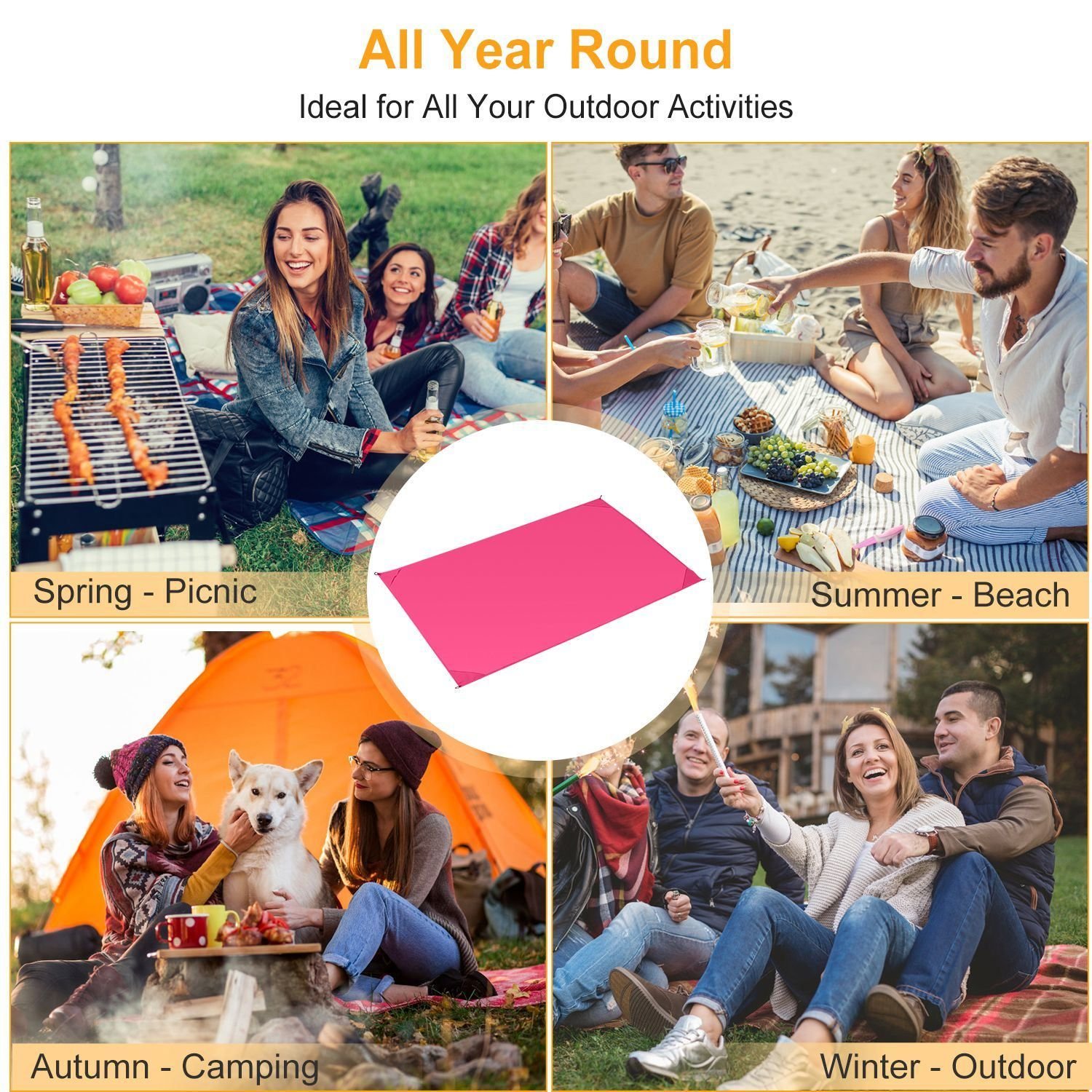 **MULTI-USE*:Our beach blanket designed with portability in mind is the perfect ground blanket for all occasions. It's for multiuse whether you're at the beach; in the park; having camping; picnic; etc. Choose it as your new favorite companion.