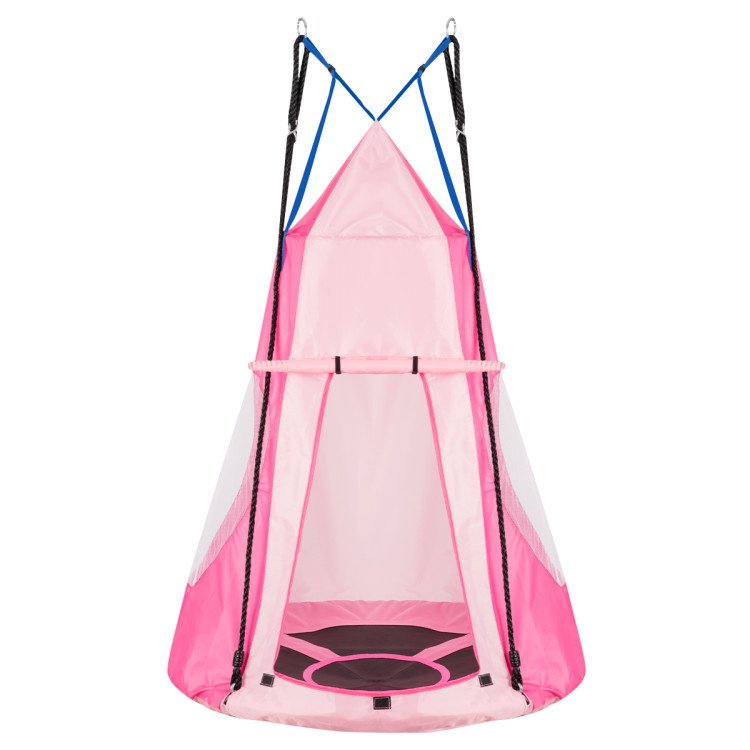 Made of a sturdy galvanized pipe frame with foam padding, strong oxford fabric, and PP jumping cloth, this nest hanging swing seat is suitable for 2 or 3 kids with a maximum loadbearing capacity of 330 lbs. The detachable tent with a screen window and door not only ensures the kid's safety but also gives them some privacy. You can easily mount the swing in the bedroom, playroom, or backyard tree and take it down for easy storage.